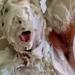 Penelope got rubbed down on an inflatable covered with shaving cream by Bradley k